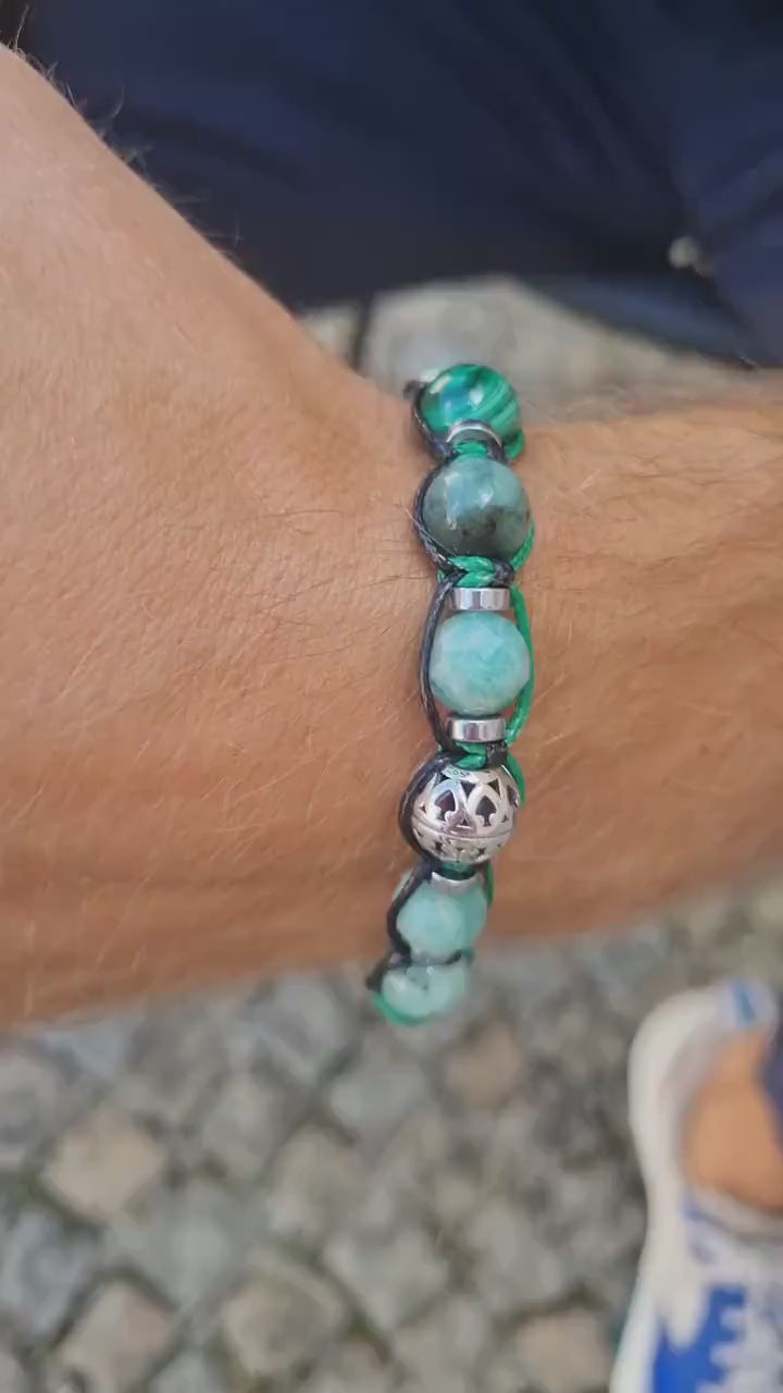 Herren Perlenarmband - Sterling Silber Amazonit Smaragd Malachit - Handgefertigter Schmuck - Geburtsstein Armband